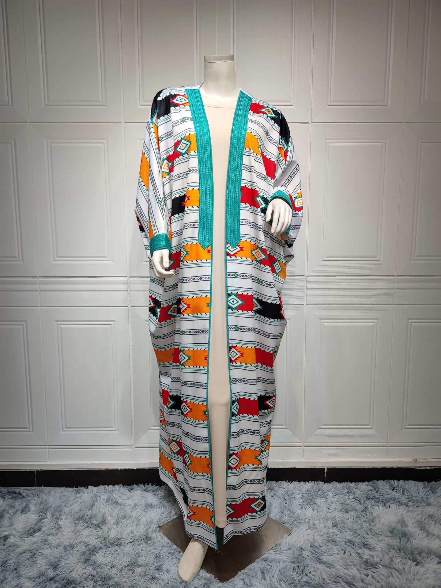 Be the first to review “Striped Batwing Sleeve Muslim Vest Coat Two-piece Set Abaya Dress”